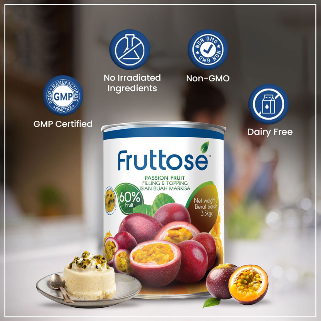 Fruttose Passion Fruit Filling and Topping (60% Fruit) - 3.3 Kg