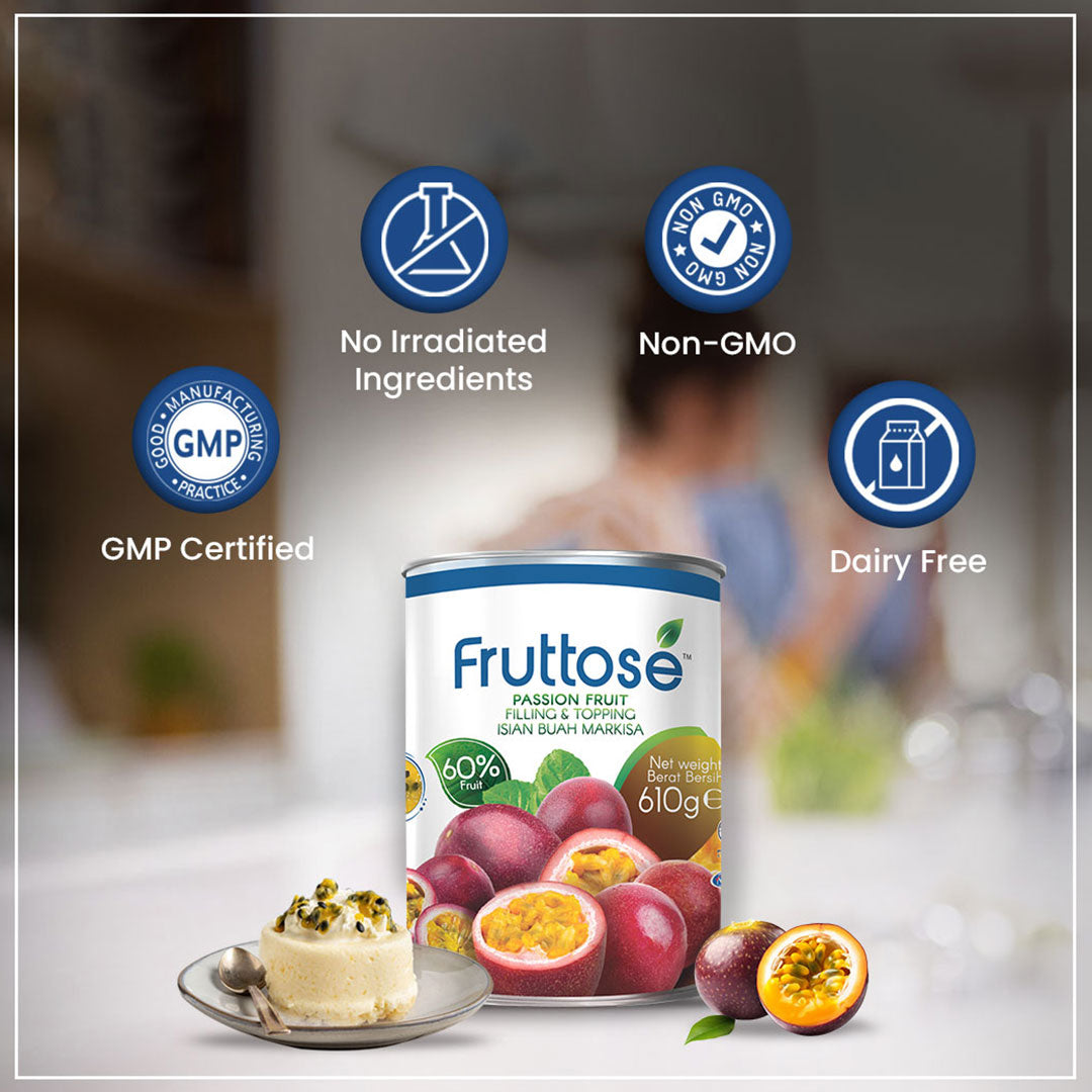 Fruttose Passion Fruit Filling and Topping (60% Fruit) - 610 Gms