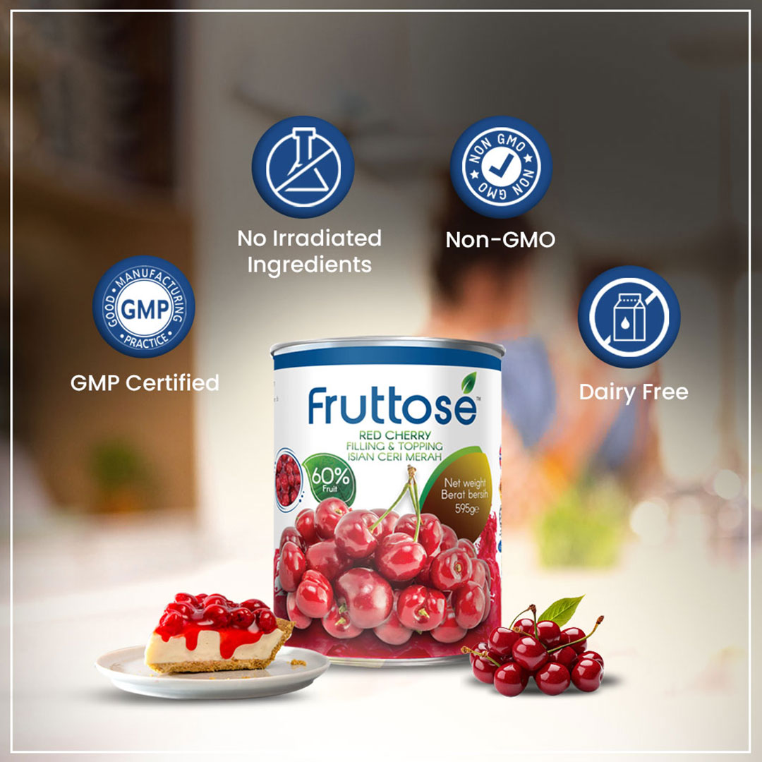 Fruttose Red Cherry Filling and Topping (60% Fruit) - 595 Gms
