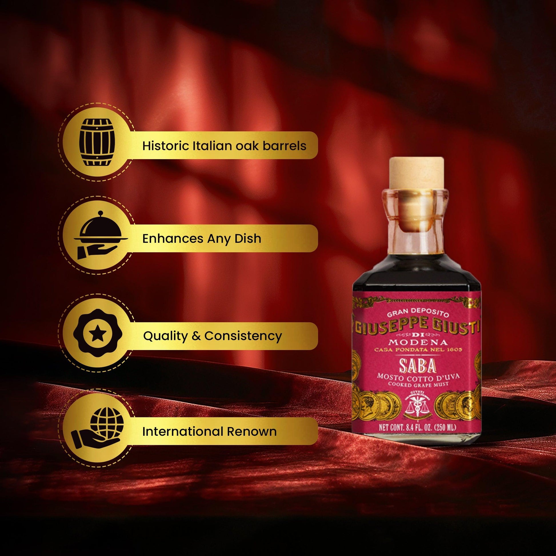 The meticulous process of reducing local grape must in open air ensures a wholesome, high-quality product. Perfect for both savory and sweet dishes, Giusti Saba Cubic adds depth and sweetness, making it a valuable addition to any kitchen.