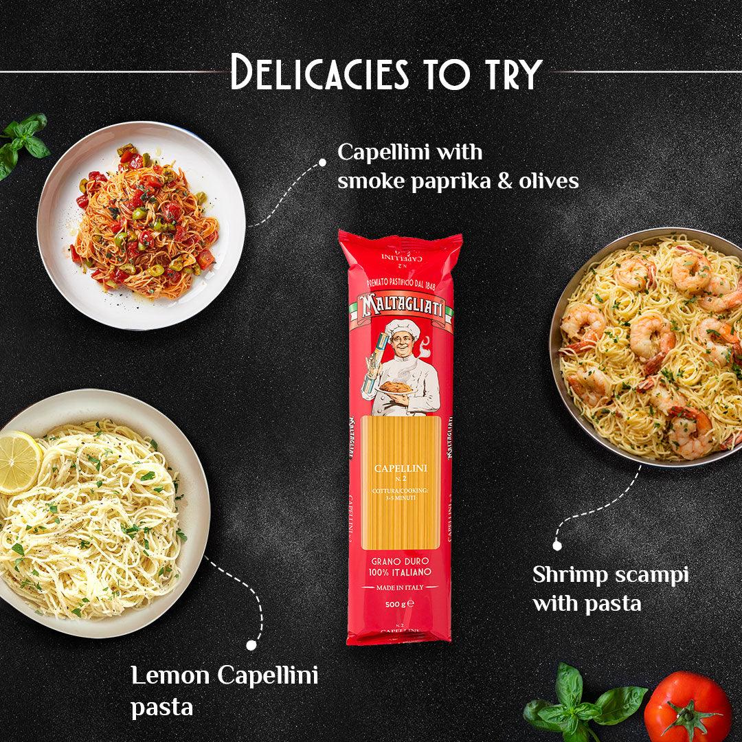 From fresh tomato and basil to flavourful aglio-e-olio sauce, these fine strands are an ideal canvas for a myriad of flavors and ingredients.
