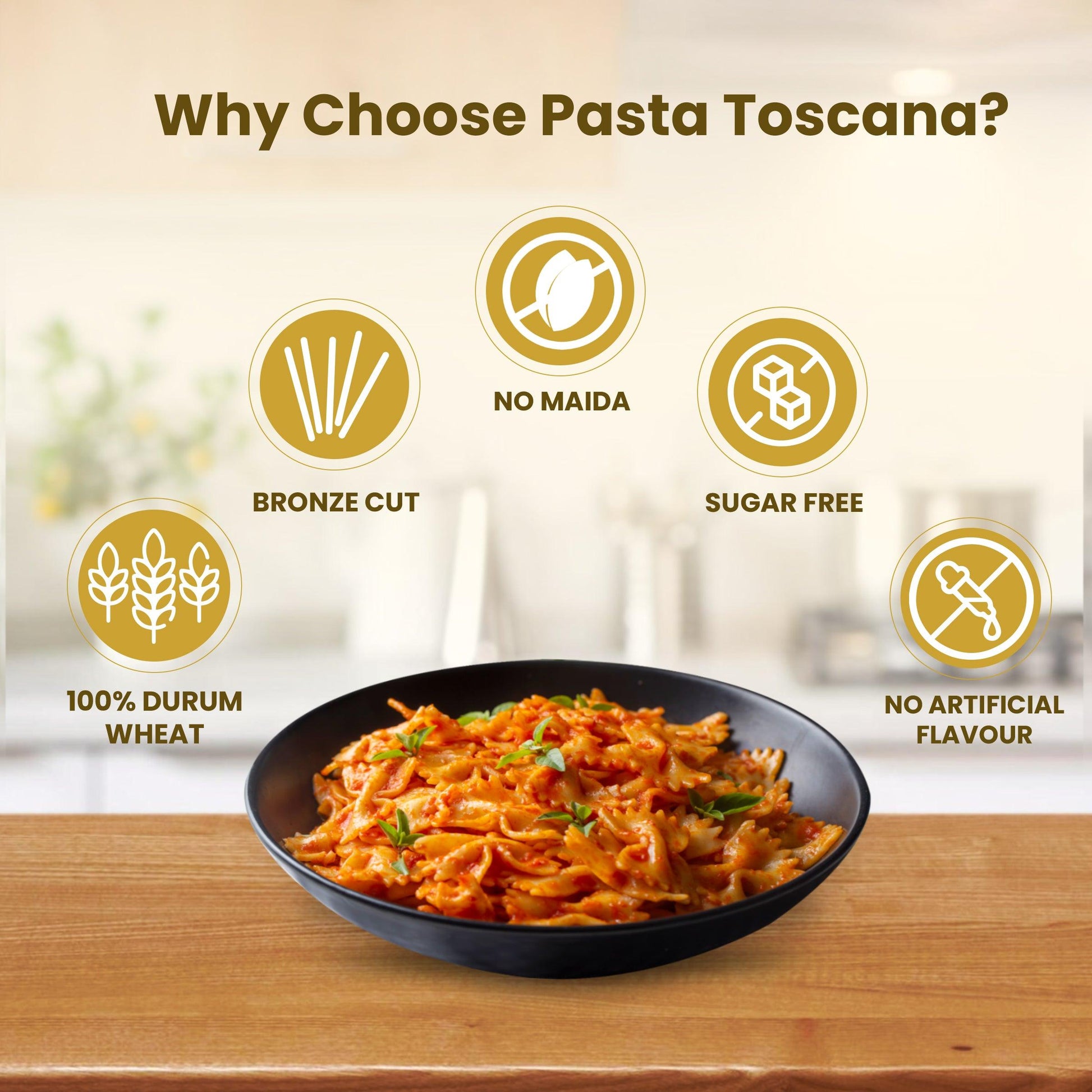 Picture the source of Penne Rigate's essence – the sun-drenched fields and pure springs of Tuscany. These elements infuse our pasta with a sense of place and purpose, where traditional crafting techniques meet modern dedication. Letting the magic of Pasta Toscana elevate your dishes to new heights, one perfectly ridged piece at a time.