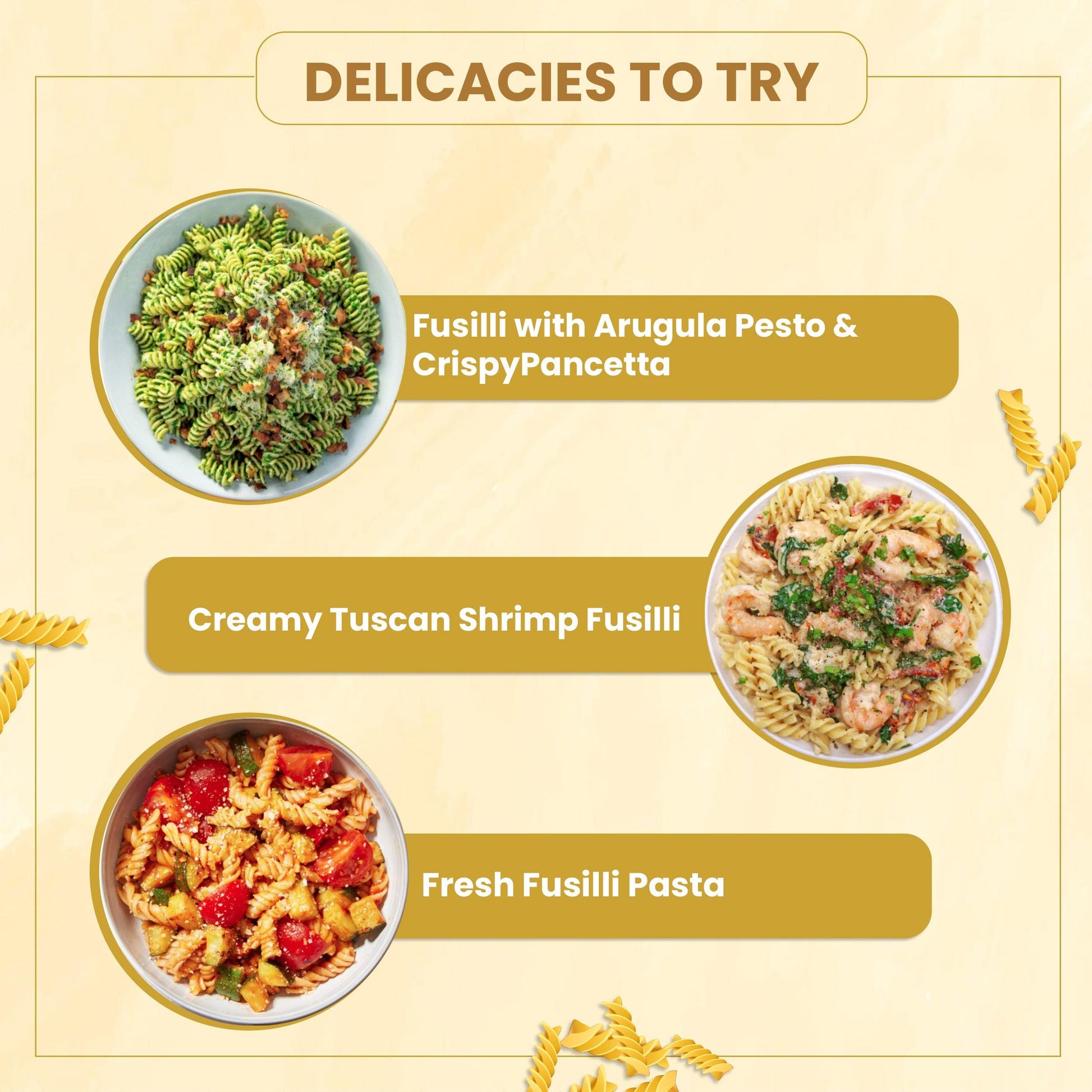 Immerse yourself in the exceptional features of Pasta Toscana Fusilli Grandi. Crafted with dedication from the finest High-Quality Durum Wheat and meticulously bronze-cut, each spiral embodies the essence of quality and authenticity. The distinctive twisted design of Fusilli Grandi captures and cradles sauces, ensuring every bite is a delightful blend of flavor and texture.