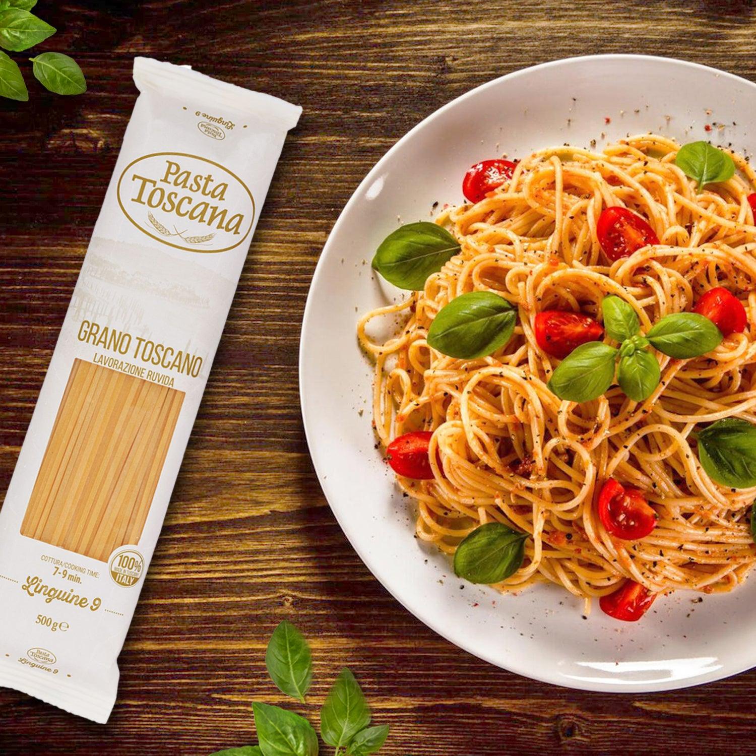 Explore the culinary versatility of Pasta Toscana Spaghetti. Its iconic shape makes it a classic choice for a wide range of sauces, from simple marinara to complex meat or seafood creations. Whether you're aiming for a quick weekday dinner or a special occasion feast, Spaghetti brings a touch of elegance to your table.