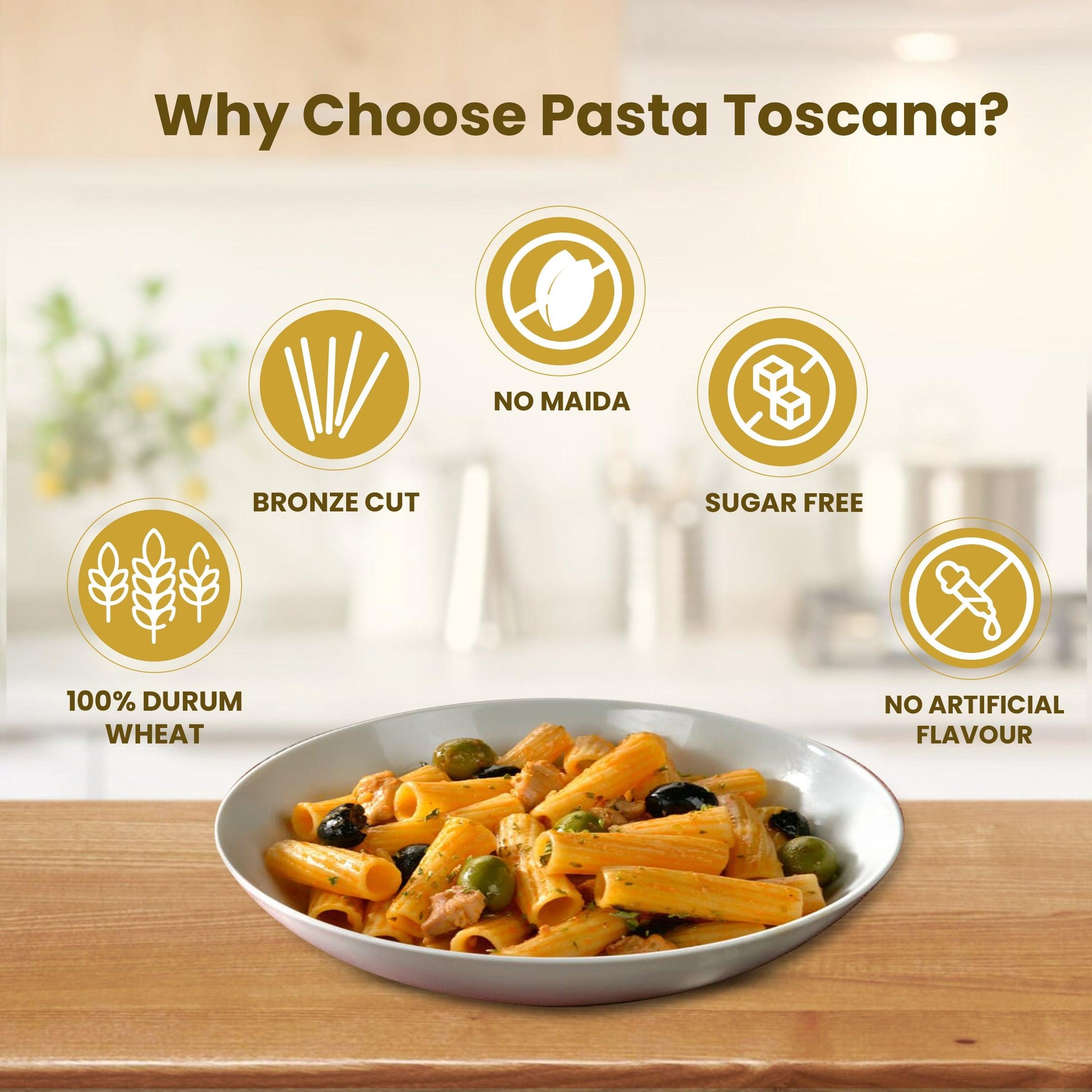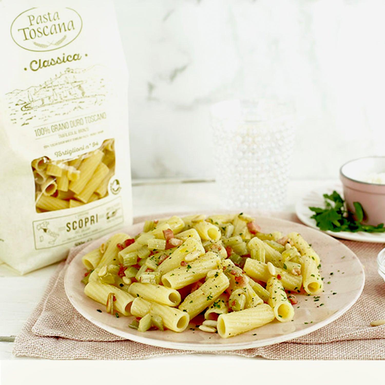 Picture the source of Pasta Toscana Tortiglioni's essence – the sun-drenched fields and pure springs of Tuscany. These elements infuse our pasta with a sense of place and purpose, where traditional crafting techniques meet modern dedication. Letting the magic of Pasta Toscana elevate your dishes to new heights, one perfect piece at a time.