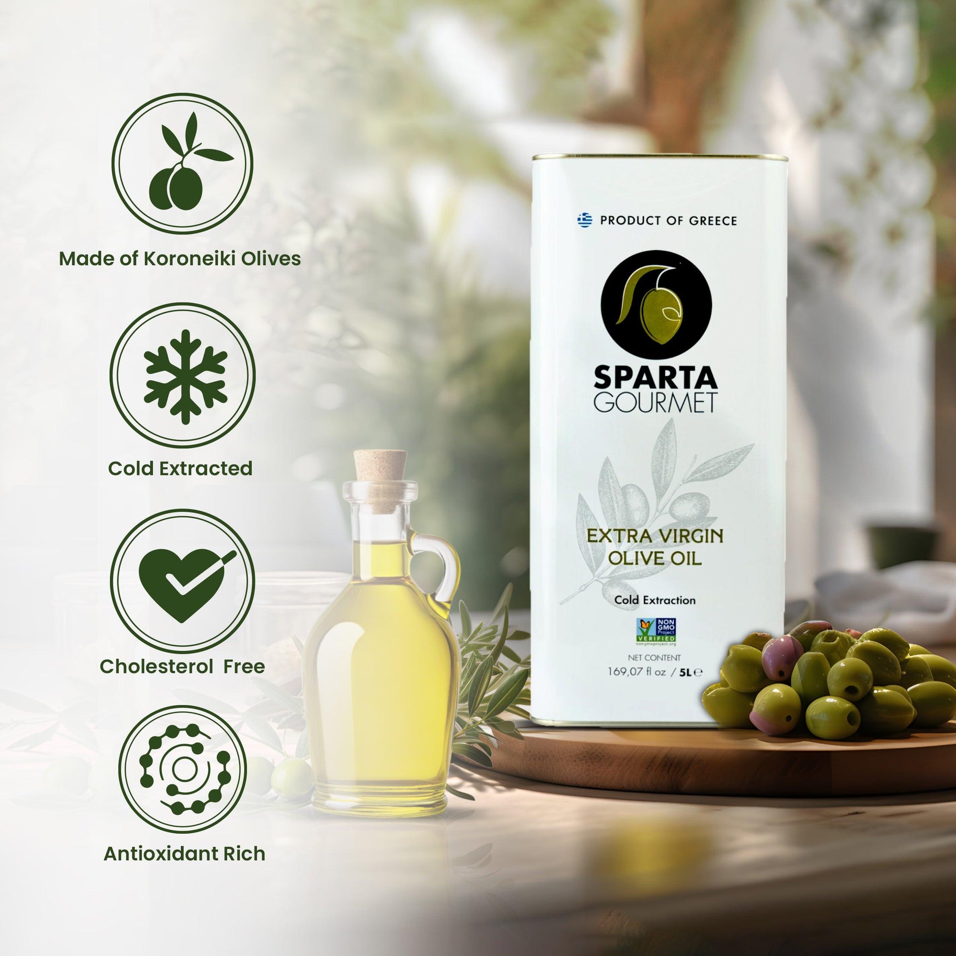 Immerse yourself in the health benefits of Extra Virgin Olive Oil, known for its heart-healthy properties and antioxidant-rich composition. Embrace the taste of Greece while nourishing your well-being.