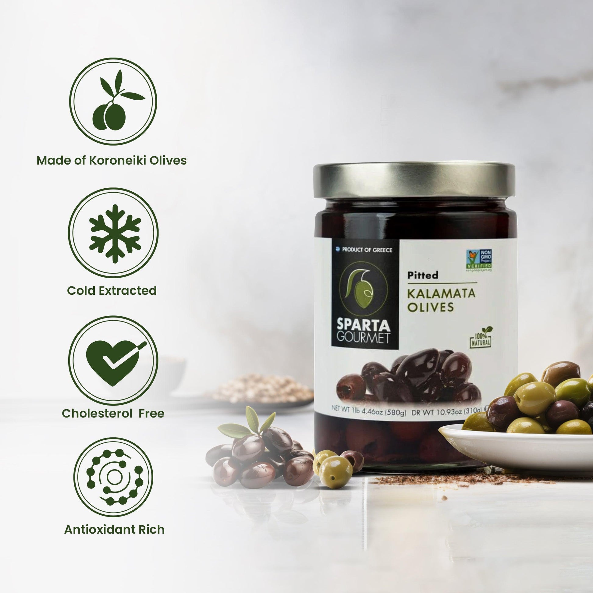 Create delicious appetizers or snack on these Greek Kalamata Pitted Olives as it is, showcasing the natural beauty and flavor of the Mediterranean.