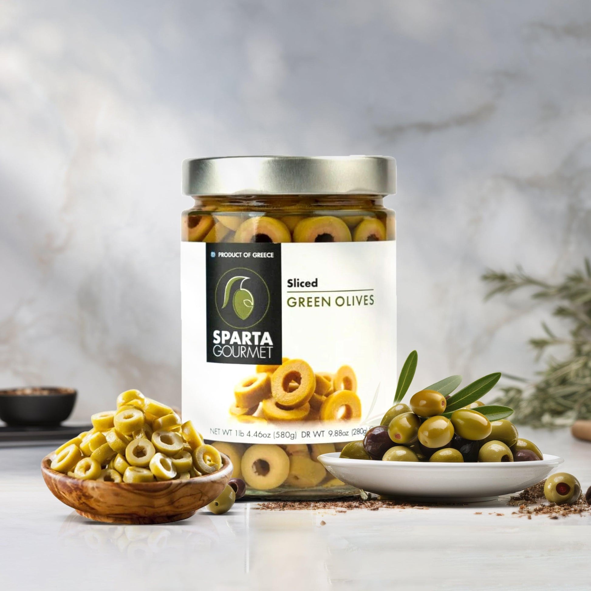 Experience the exceptional with these Green Sliced Olives, handpicked and meticulously sliced to infuse your culinary journey with the freshness of Greek tradition while being preserved and packaged using traditional vinegar to maintain their natural flavor and quality.
