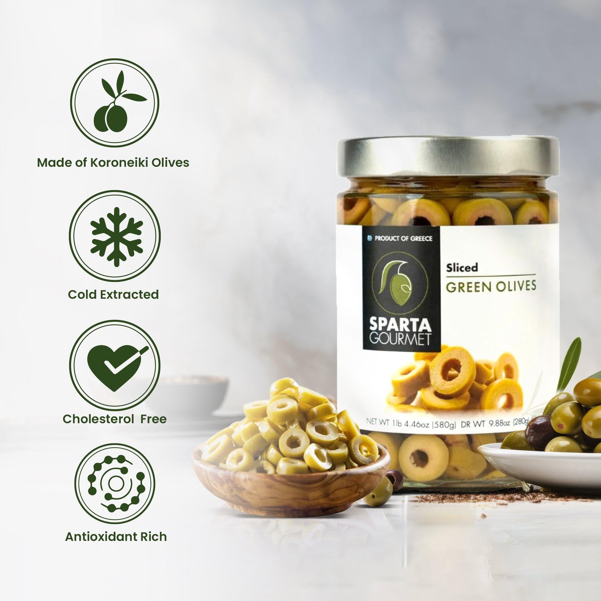 Sparta Gourmet Sliced Green Olives - 580 gms